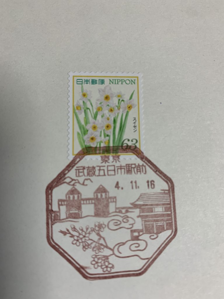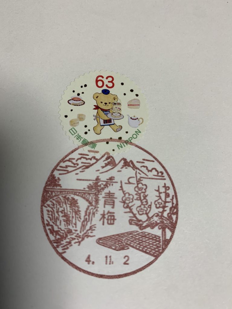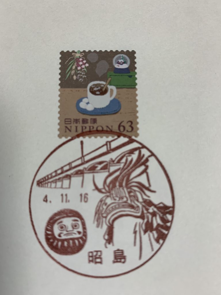 東京都風景印2023.02.192023.02.18目次西多摩郡奥多摩町 4局小河内奥多摩日原古里青梅市 8局御岳二俣尾吉野青梅上町青梅勝沼青梅青梅長淵青梅藤橋西多摩郡檜原村 1局檜原あきる野市 3局乙津武蔵五日市駅前西秋留西多摩郡日の出町 1局大久野羽村市 5局羽村小作台羽村加美羽村羽村南羽村富士見西多摩郡瑞穂町 1局瑞穂昭島市 5局拝島昭島昭島駅前昭和昭島田中西多摩郡奥多摩町 4局小河内奥多摩湖小河内郵便局奥多摩三本杉 氷川大橋奥多摩郵便局日原日原鍾乳洞 洞内金剛杖日原簡易郵便局古里多摩川 奥多摩古里郵便局青梅市 8局御岳王堂美術館 カヌー 御岳山御岳郵便局二俣尾御嶽 青年の像 カヌー二俣尾郵便局吉野吉野梅郷 吉川英治記念館吉野郵便局青梅上町青梅山 金剛寺表門 将門梅 青梅大祭 山車青梅上町郵便局青梅勝沼青梅公園 SL青梅勝沼郵便局青梅梅 万年橋 織物 大御嶽山御嶽青梅郵便局青梅長淵多摩川 鮎美橋 鹿島玉川神社 獅子舞鹿頭青梅長淵郵便局青梅藤橋仁王門 つつじ青梅藤橋郵便局西多摩郡檜原村 1局檜原神戸岩 秋川渓谷檜原郵便局ひのじゃがくんあきる野市 3局乙津大岳鍾乳洞 秋川乙津郵便局武蔵五日市駅前八角形:JR武蔵五日市駅 大悲願寺山門 桜武蔵五日市駅前郵便局西秋留西秋留石器時代住居跡 真照寺薬師堂西秋留郵便局西多摩郡日の出町 1局大久野白岩の滝 シダレアカシデ もみ 杉大久野郵便局羽村市 5局羽村小作台奥多摩連山 多摩川 土器 小作台浄水場 桜小作台郵便局羽村加美奥多摩連山 多摩川小作堤 養殖淡水鮎 桜羽村加美郵便局羽村玉川兄弟銅像 市立動物園 羽村水道堰 桜 山並羽村郵便局羽村南玉川兄弟銅像 玉川上水取入口 羽村陣屋跡羽村郵便局羽村富士見奥多摩連山 多摩丘陵 まいまい 井戸桜羽村富士見郵便局西多摩郡瑞穂町 1局瑞穂丹波連峰 スカイホール 六道公園碑瑞穂郵便局昭島市 5局拝島拝島公園内大日堂 多摩川 拝島橋 城跡拝島郵便局昭島熊野神社 獅子舞 拝島橋 だるま 拝島元三大師昭島郵便局昭島駅前昭島駅北口 くじら昭島駅前郵便局昭和昭和クジラ 熊野神社 大いちょう かんかん石昭和郵便局昭島田中木造 金剛力士像 藤昭島田中郵便局