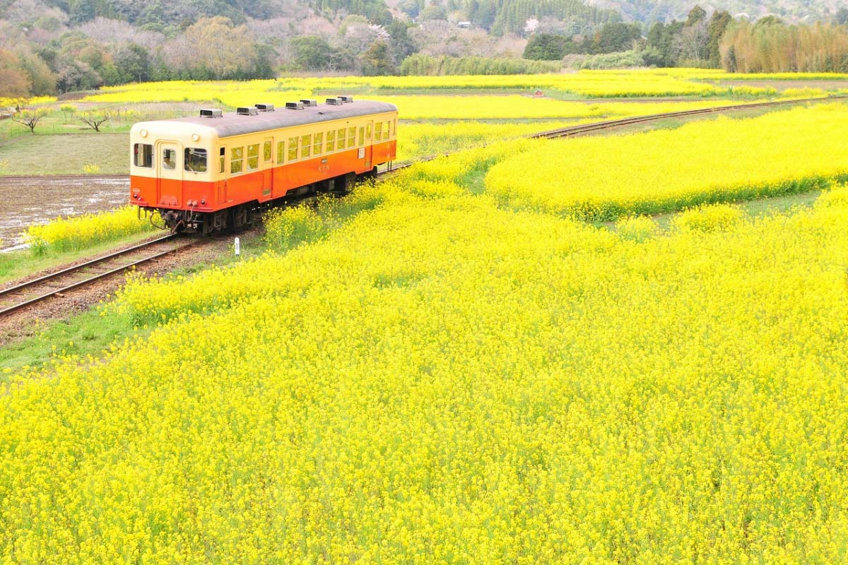 千葉県いすみ鉄道と菜の花